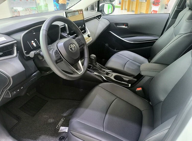 Nội thất xe Toyota Corolla Altis 1.8V có thiết kế vẫn được giữ nguyên. Trên vô-lăng xe tích hợp các phím bấm đàm thoại rảnh tay, media, ra lệnh giọng nói nhưng ga tự động chỉ là loại thông thường thay vì thích ứng do thiếu gói an toàn chủ động Toyota Safety Sense. Ghế ngồi bọc da cho tất cả phiên bản & có thể chỉnh điện lên đến 10 hướng.