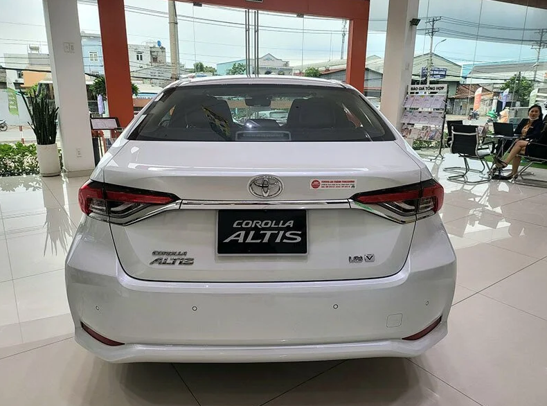 Tiến tới phần đuôi xe, Toyota Corolla Altis đã tinh chỉnh cụm đèn và cản sau theo dạng thiết kế nổi khối, mang đến cho xe sự bề thế. Cụm đèn hậu hình chữ L sử dụng bóng LED kết hợp với đường chỉ mạ crom nối liền hai bóng.