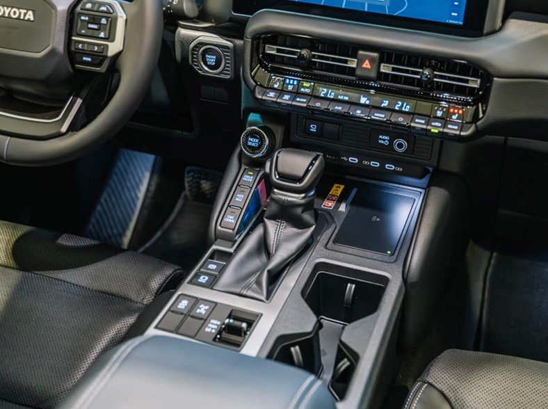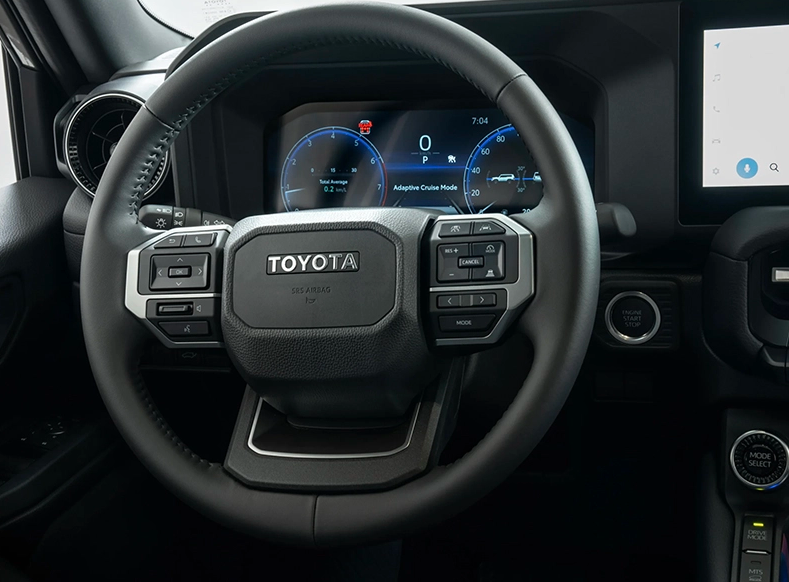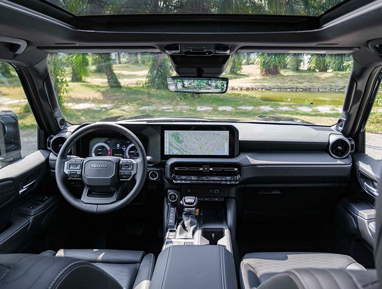 Nội thất của xe cũng được thay đổi toàn diện với những đường nét góc cạnh, phù hợp với kiểu dáng hầm hố bên ngoài. Vô lăng hiện đại với 3 chấu, bọc da và tính năng chỉnh điện 4 hướng, sưởi vô lăng. Các nút bấm tích hợp điều chỉnh âm thanh, điều khiển màn hình trung tâm, tính năng TSS giúp khách hàng dễ dàng thao tác, lái xe thuận tiện hơn.