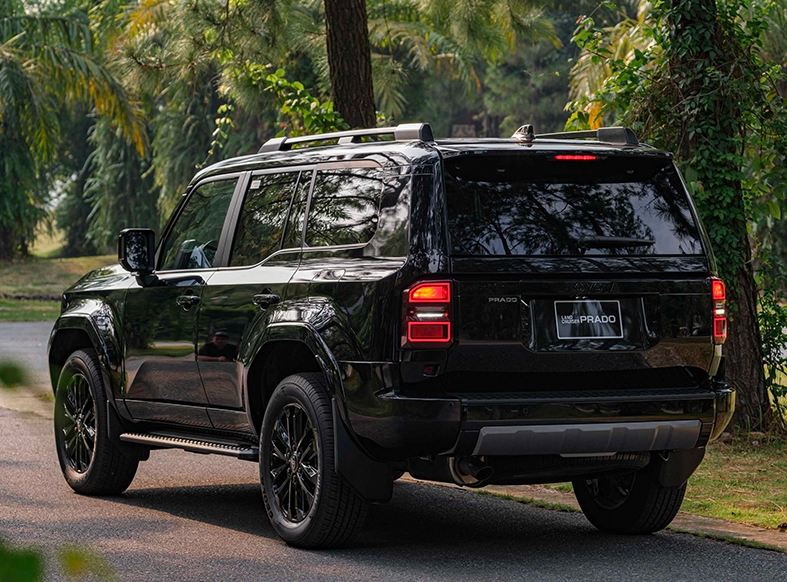 Phần đuôi xe của Toyota Land Cruiser Prado 2025 được thiết kế mạnh mẽ và tinh tế, thể hiện rõ nét phong cách SUV hạng sang và khả năng off-road.